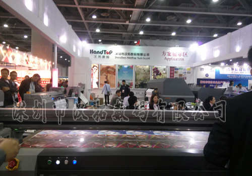 在為期三天的展會中,我公司展出的理光GEN5噴頭HT1600A 雙通道四色加白UV卷板打印機、理光GEN5噴頭HT2512D 單通道六色加白UV平板打印機、理光GEN5噴頭HT32OOB 單通道六色加白UV卷板打印機均在展會現場受到了參展人士的廣泛關注。非常多的國內、國外參展商前來我公司展位現場,詢問並觀看我公司員工現場演示操作機子打印樣品。在我公司參會人員專業認真的講解和觀看到機器出樣的打印效果下,客戶紛紛讚歎我公司的UV打印機科技含量高,操作便捷,性能優異,打印效果完美之至。客戶紛紛索要公司宣傳圖冊與樣品,並主動取得我公司的業務聯係方式,並計劃近期前往我公司親自考察試機購買!