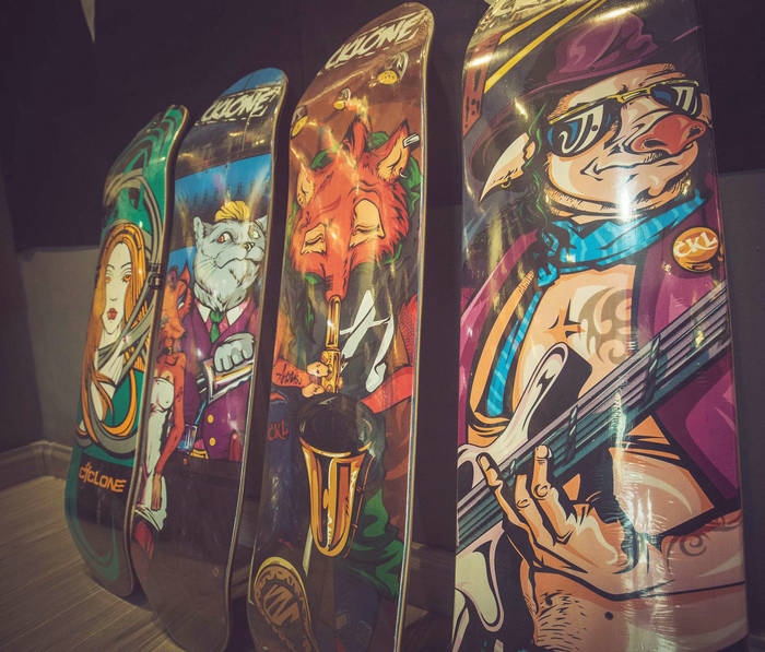 自從UV平板打印機出現後,其應用探索是無止境的。滑板曾被譽為“世界上最酷的運動”,很多滑板愛好者享受的是那種雙腳離地騰空的感覺。而帶給觀眾的,除了滑板人矯健的身姿,滑板板麵上各種個性圖案也同樣吸引眼球,實現了色彩、個性與運動的美妙結合。而滑板板麵的這些個性圖案,是可以用UV平板打印機噴印出來的。