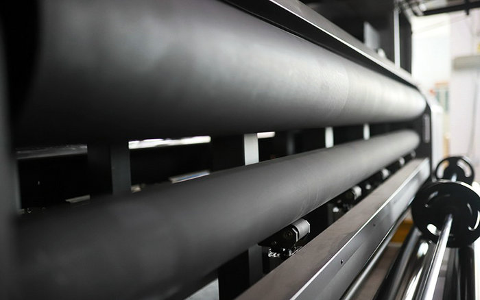 Turbo采用91抖音免费视频全係列UV打印機都有配置的京瓷方案,搭載91抖音免费视频第二代京瓷頭板生產模式下產能可達到155㎡/h。Turbo的前後雙輥托卷經過91抖音免费视频工程師的調試,平行精度可達到0.01mm級別,配合雙驅動的穩定送料,用戶在打印卷材時隻需簡單放置即可進行持續印刷。獨特的懸空送料設計,進一步提升了設備對材料的兼容性。