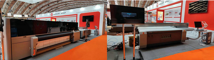 此次展會亮點機型HT2500ROBOUV卷板一體機設計,不僅可以打印市麵上絕大部分的卷材,還能打印PVC板、瓦楞紙板、木板、鋁板甚至是蜂窩板、中空板等不同材質、厚度的板材,實現了對不同材質的高效打印。該設備還配備了京瓷工業級灰度噴頭,分辨率最高達363*3600dpi,超高畫質,生動還原色彩世界,為客戶帶來極致視覺盛宴。如此一來,無論追求高速工業級產能的製造企業還是追求更豐富、靈活應用的定製化企業,都能從中受益。